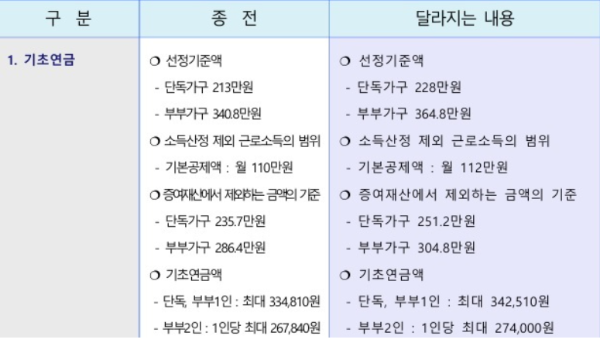 또한 소득 인정 기준도 완화되어 기초연금을 받을 수 있는 어르신들이 늘어날 것으로 예상됩니다.