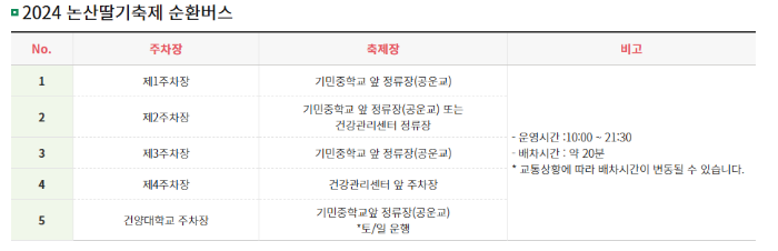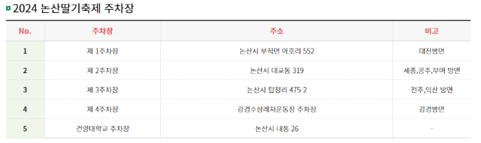 논산딸기축제 주차 및 교통편