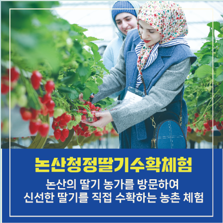 논산의 딸기 농장에서 직접 딸기를 따고 맛볼 수 있는 체험 프로그램입니다. 🍓