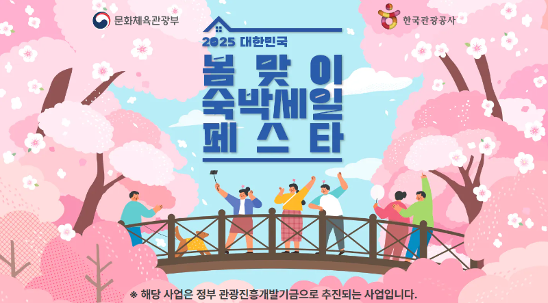 '2025 대한민국 봄맞이 숙박세일 페스타'를 통해 합리적인 가격으로 국내 여행을 즐길 절호의 기회입니다. 선착순으로 발급되는 만큼, 원하는 숙소를 빠르게 예약하여 봄의 정취를 만끽하시길 바랍니다.
