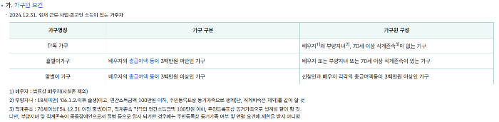 ✅ 가구 요건: 홑벌이 또는 맞벌이 가구