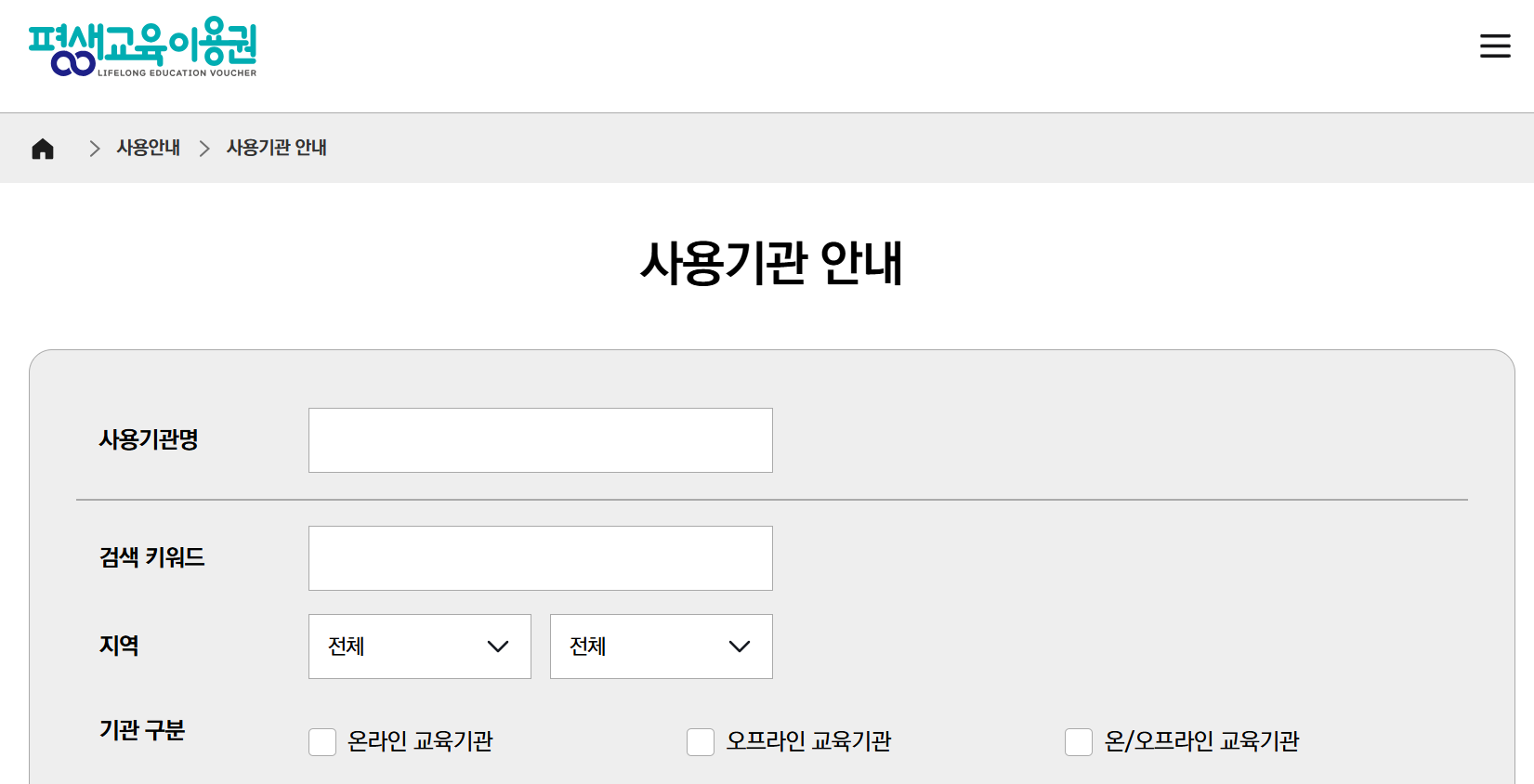 반드시 ‘평생교육이용권 사용기관’으로 등록된 기관에서만 사용 가능합니다