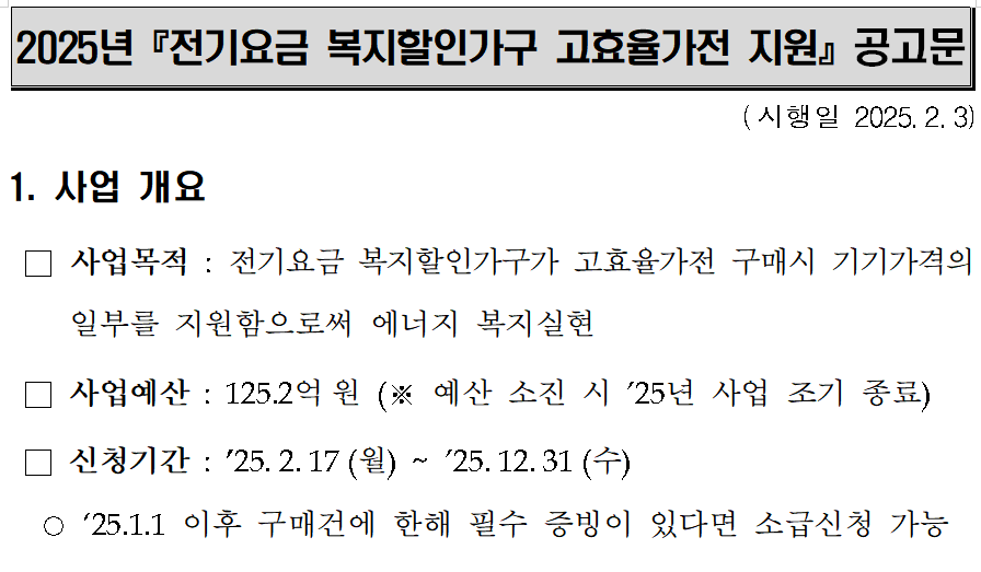 ✅ 지원 대상: 전기요금 복지할인을 받고 있는 가구 중 지원기기를 구매한 가구