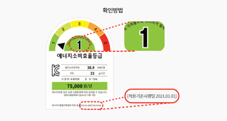 각 가전제품에 붙어있는 라벨을 통해 에너지 효율등급을 확인할 수 있으며, 라벨이 낡아서 보이지 않는 등 확인할 수 없다면 아래 홈페이지를 통해 에너지 효율등급을 확인할 수 있습니다.