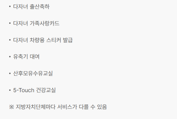지역별 다자녀 혜택