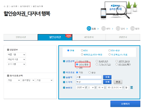 고속철도를 이용할 경우, 다자녀 가정이라면 할인 혜택을 받을 수 있습니다. 두 자녀 가정은 KTX 및 SRT 이용 시 성인 요금의 30%를 할인받을 수 있습니다. 성인 1명 포함 3인 이상이 탑승하는 경우 해당 혜택이 적용되며, 가족이 함께 여행할 때 매우 유용합니다.