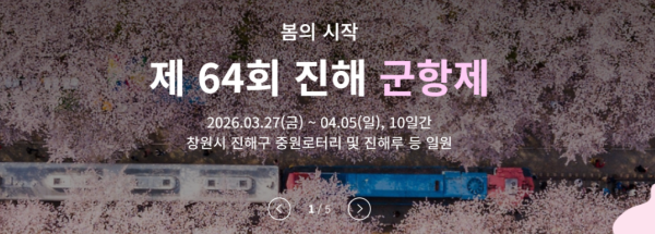 경상남도 창원 진해구에서 열리는 군항제는 대한민국에서 가장 큰 규모의 벚꽃 축제입니다. 매년 수백만 명의 관광객이 방문하는 대표적인 2026년 봄꽃축제입니다.