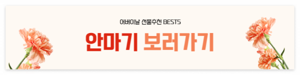 5월하면 빠질 수 없는 날인 어버이날. 그동안 감사했던 마음을 담아 부모님께 드릴 선물을 고민하고 계시는 분들이 많이 계실 것 같은데요. 그런분들을 위해 어버이날 부모님께 드리기 좋은 선물 추천 BEST5를 준비했습니다. 어버이날 선물 고민하시는 분들에게 힘이 될 수 있기를 바라며 포스팅 해보겠습니다.