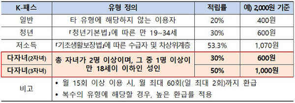 K-패스 다자녀 할인 혜택